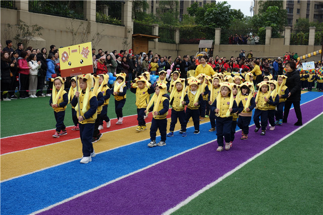除了各方阵代表队外,各班的小朋友也组成了班级方阵,他们纷纷身穿特色班服,或手持、或头戴各类道具,喊着响亮的口号、踏着整齐的步伐走入会场。看,他们来了~~~