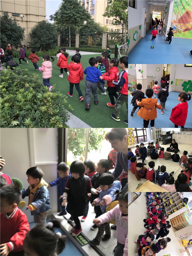 预警广播响起,告知全体师幼园内受到“歹徒”袭击,各班教师及疏散引导小组成员立即组织小朋友们快速、有序地撤离。